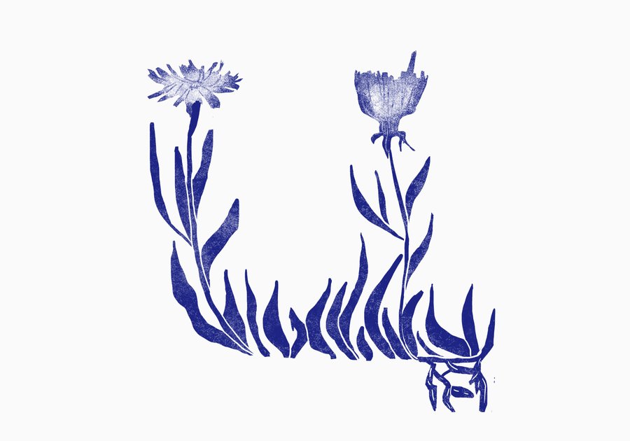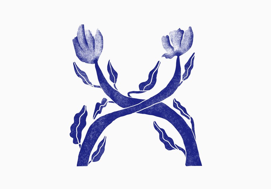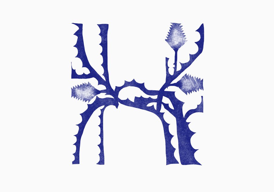 Алфавит, вдохновлённый цветами и растениями, а также техникой линогравюры