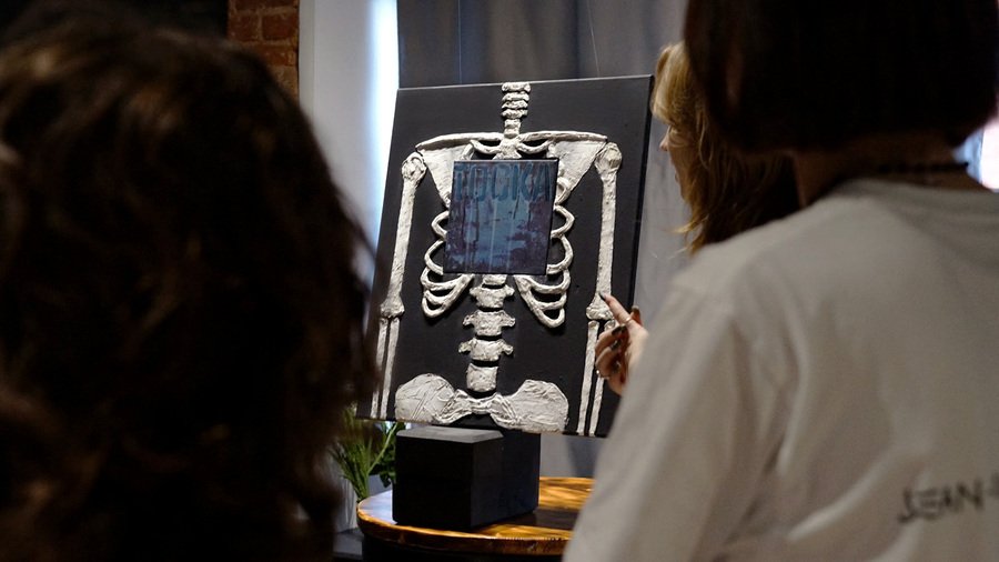 Стержнем всей серии является работа, отличающаяся по стилистике от всех остальных. В этом изображении фрагмента скелета в реальный размер мне хотелось сделать некую аллюзию на рентгеновский снимок. Он может показать сломанные кости, но где же увидеть «снимок души»?