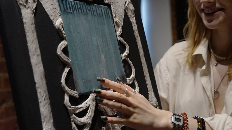 В презентации мне была важна «интимность», именно поэтому было выбрано небольшое помещение с темными стенами. Мне хотелось передать атмосферу внутреннего мира человека.