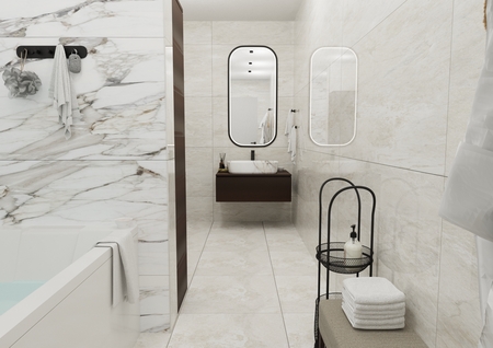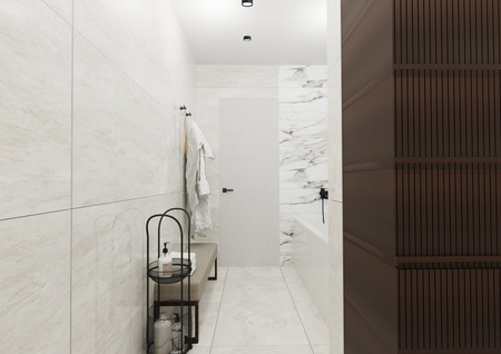 Проект посвящен разработке санузла в загородном доме шеф-повара в республике Карелия. Проект включает в себя планы теплых полов и стен, раскладку плитки, выводы электрического оборудования, а также горячего и холодного водоснабжения. Проект сопровожден визуализациями.