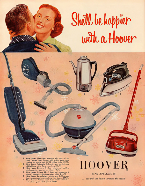 Во времена второй мировой войны американским женщинам пришлось встать на рабочие места мужчин. Война закончилась, мужчины вернулись домой, военное производство стало сворачиваться, а рабочие места сокращаться. Женщины ощутили свободу, но государство не было в этом заинтересовано. Именно поэтому образ работающей женщины на плакатах сменился на образ идеальной домохозяйки и жены.
