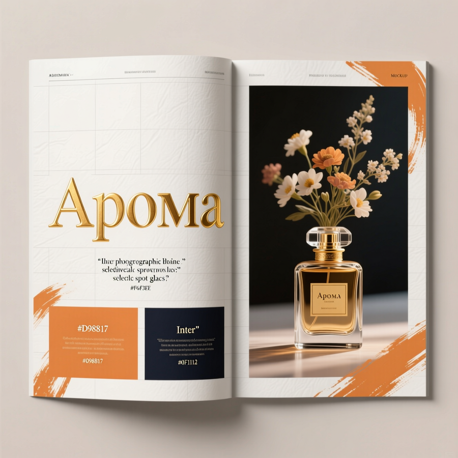 Elegant monogram combining letter «A» and a stylized perfume droplet, wordmark «Aroma» (Didot) to the right, clean vector logo for brand identity, primary colors: Deep Ink for wordmark, Accent Aromatic Amber for droplet accent, minimal negative space, thin stroke, scalable for small sizes, exportable as flat vector