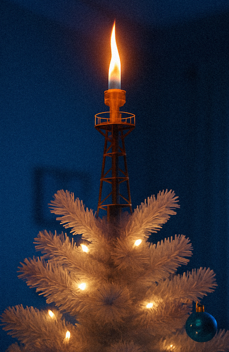 Пламя — как газовое, так и обычное — ассоциируется с теплом и воспоминаниями о «доме» — также, как и всё новогоднее. А характерный цвет газового огня как нельзя лучше подходит к зимней тематике.