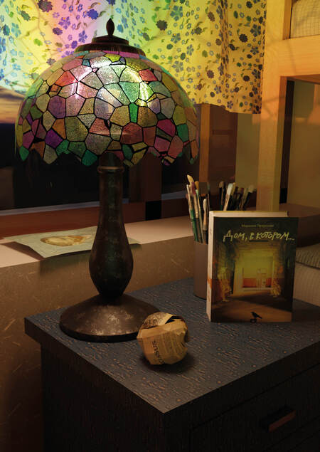 Данный проект отражает видение атмосферы и эстетики книги «Дом, в котором…». Основная идея проекта заключается в создании жилого пространства, по мотивам этой книги. Комната является личной территорией её обитателей. Поэтому она должна быть уютной, теплой и живой. Каждая часть комнаты заполнена её обитателями: фотографии на стенах, игрушки, разбросанный мусор — всё это следы их присутствия.