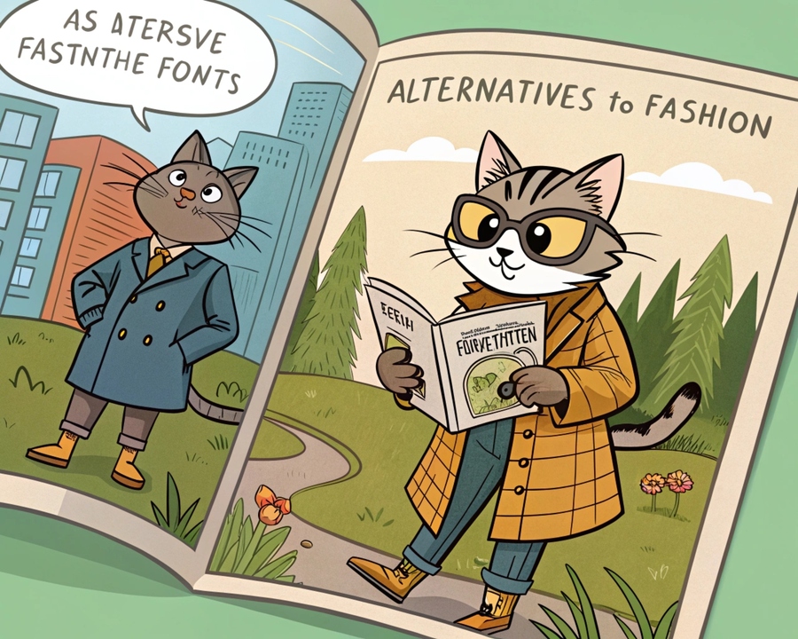 The second prompt: A comic book about cats and alternatives to fast fashion