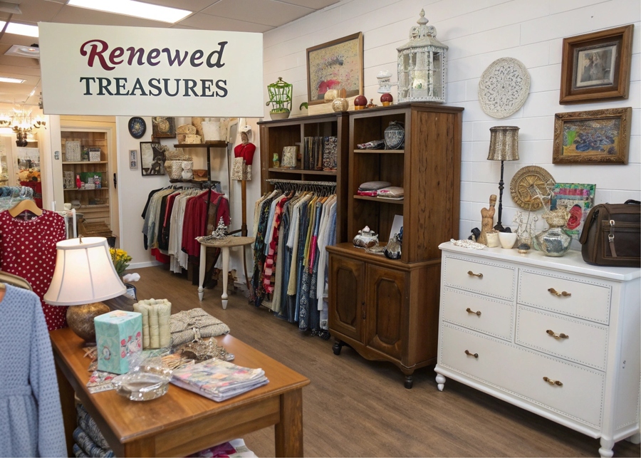 Prompt: Renewed Treasures prides itself on sustainability, promoting eco-friendly shopping by encouraging customers to embrace second-hand and reduce waste. Staff members are friendly and knowledgeable, happy to share the stories or history behind unique items. It’s more than a shop—it’s a place where old things find new purpose and charm.