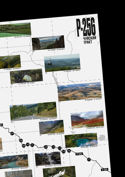 Создание фирменного стиля трассы Р-256 Чуйского тракта, для привлечения внимания к автопутешествиям и превращения пути из утомительного промежуточного этапа в захватывающее приключение.
