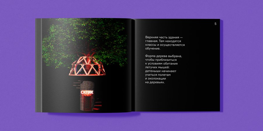Книга для вокальной студии летучих мышей «Скрик», в которой собрана основная информация о главных помещениях, сотрудниках и обучении в целом.