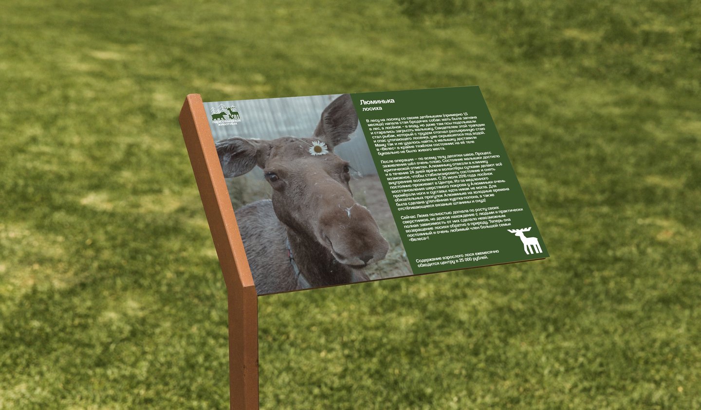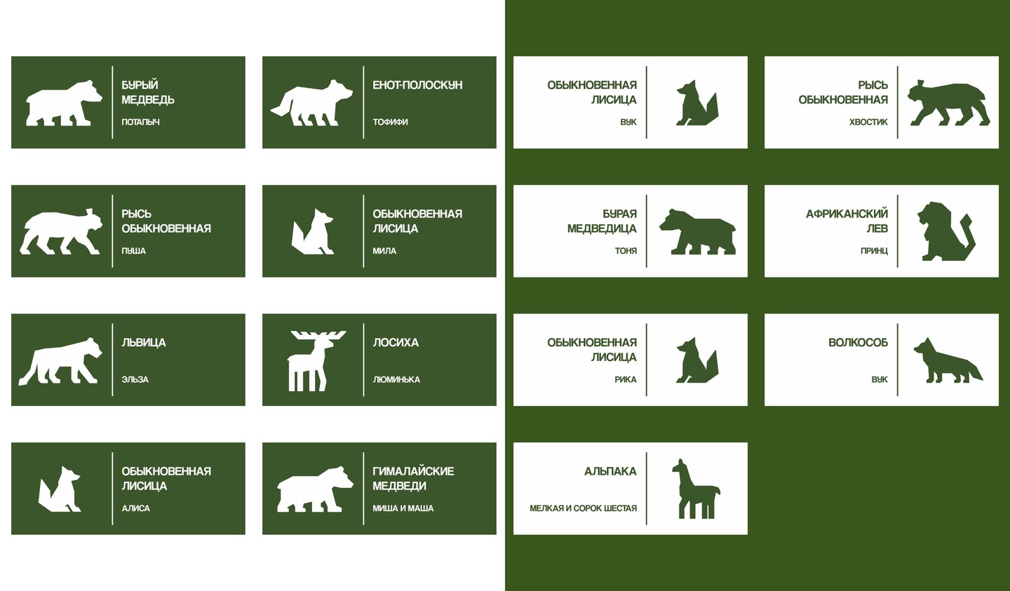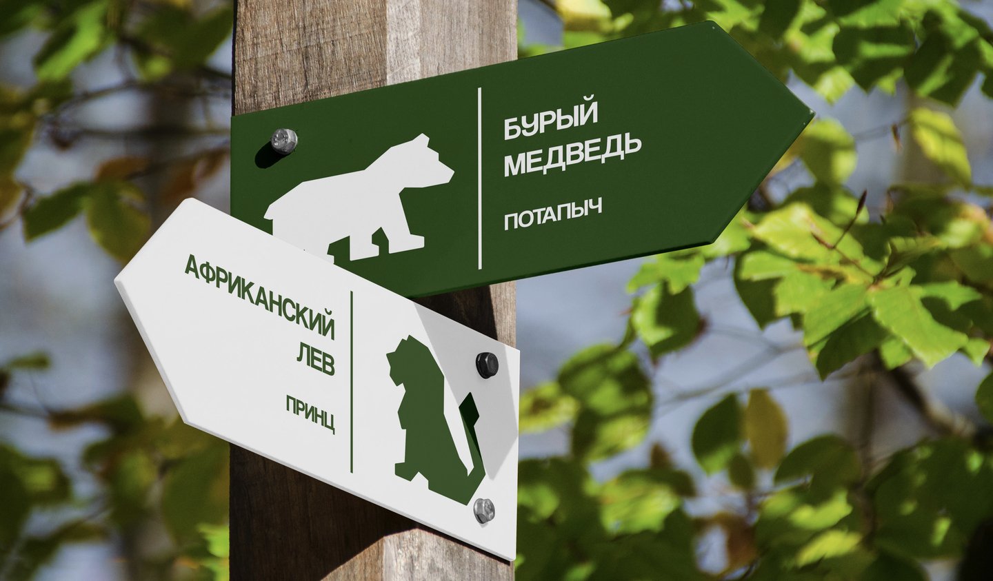 Фирменный стиль парка основан на пиктограммах животных. Парк располагается в большом хвойном лесном массиве, поэтому, так же были добавлены пиктограммы елок. Животные и елки «живут вместе» в фирменном стиле. Они будто гуляют в густом хвойном лесу, образуя паттерны, которые используются на всех носителях.