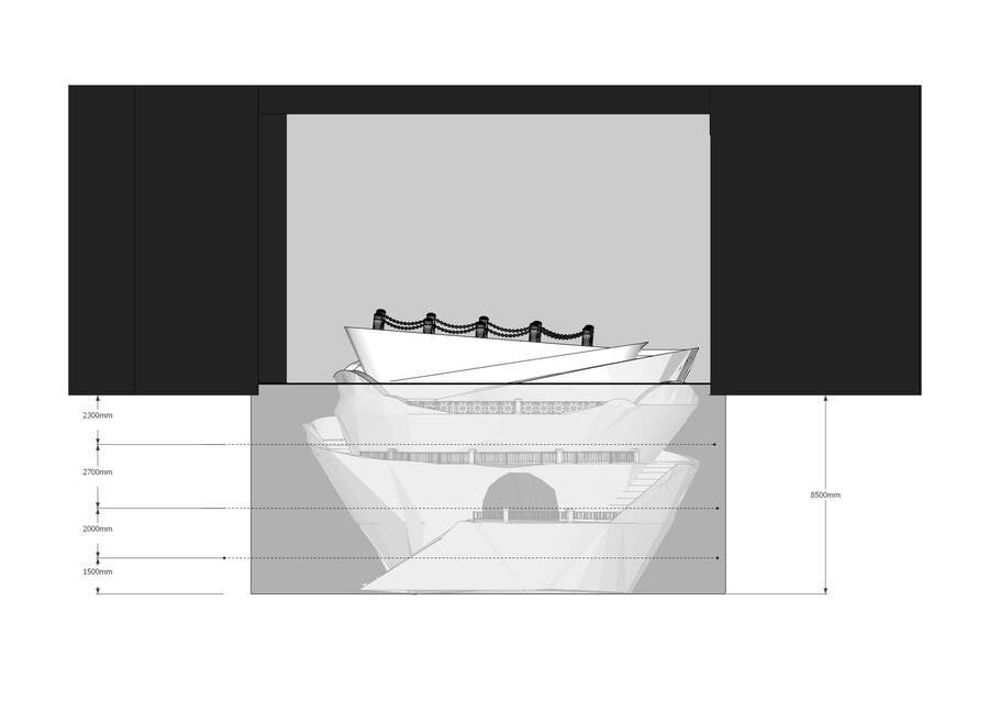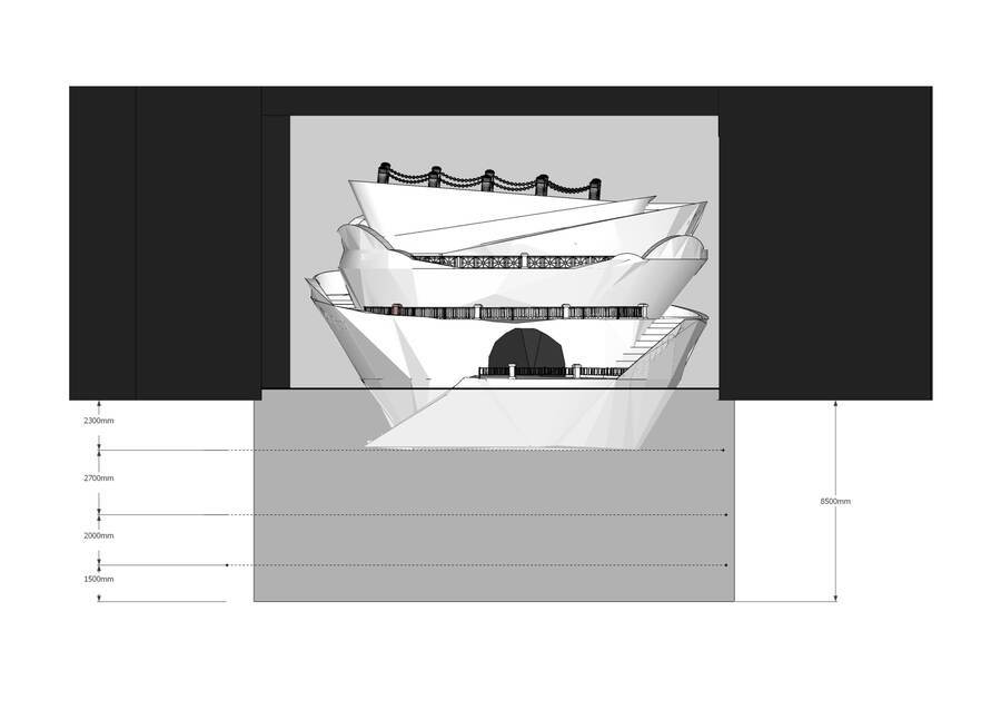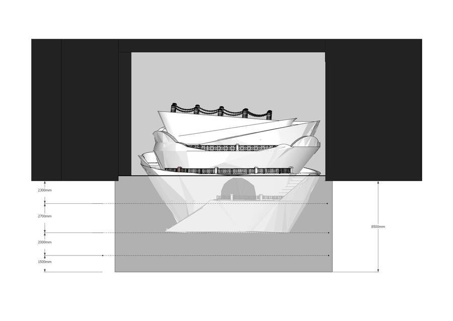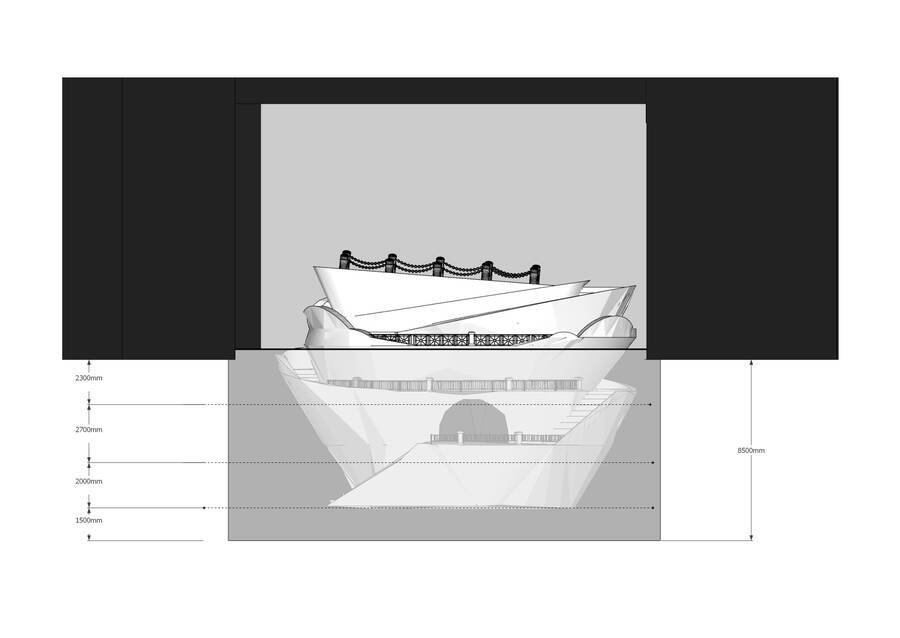Сама же воронка складывается из различных петербургских набережных, показывая следующую символику: Петербург — это город на воде, и набережная для этого города — способ укратить природу, окультурить ее, сделать доступной и неопасной для человека. Подобное противостояние природного и необузданного светскому и общественному — характерный внутренний конфликт для романтических героев. Герман из оригинальной повести конечно не может быть отнесен к такому типу, однако стратсный, чувствующий и борющийся с собой Герман из оперы как нельзя лучше выражается через этот символ. Набережные петербурга также в некотором роде детерминируют материал и фактуру, с которой предстоит работать, ведь почти все они сделаны из розового гранита, имеющего узнаваемый характерный вид, а также обрамлены ограждениями с узнаваемыми паттернами