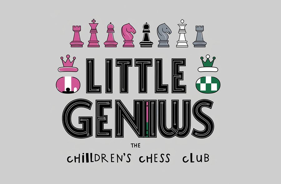 | Promt: For the children’s chess club «Little Genius» a unique set of fonts is used, where each letter is detailed with an outline or built-in elements of chess pieces (queen, pawn, knight). The main colors of the fonts are pink, green, gray, white and black.