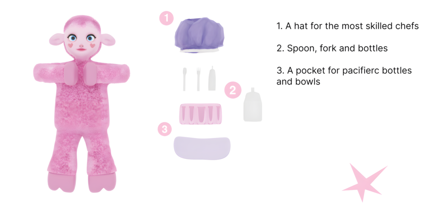 We use soft colors like light blue, soft pink, and pale purple. These colors make the toys look like they are from a gentle, dreamy world. They also feel nice to touch, which helps kids feel calm and happy. We are planning to create an animated series. This will help kids get to know each toy better and show how they work together to help kids grow.