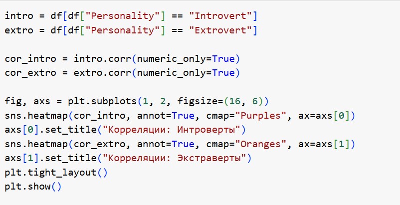 Первым делом я выполнила загрузку необходимых библиотек, также загрузила сам датасет и настроила палитру цветов для интровертов и экстравертов.