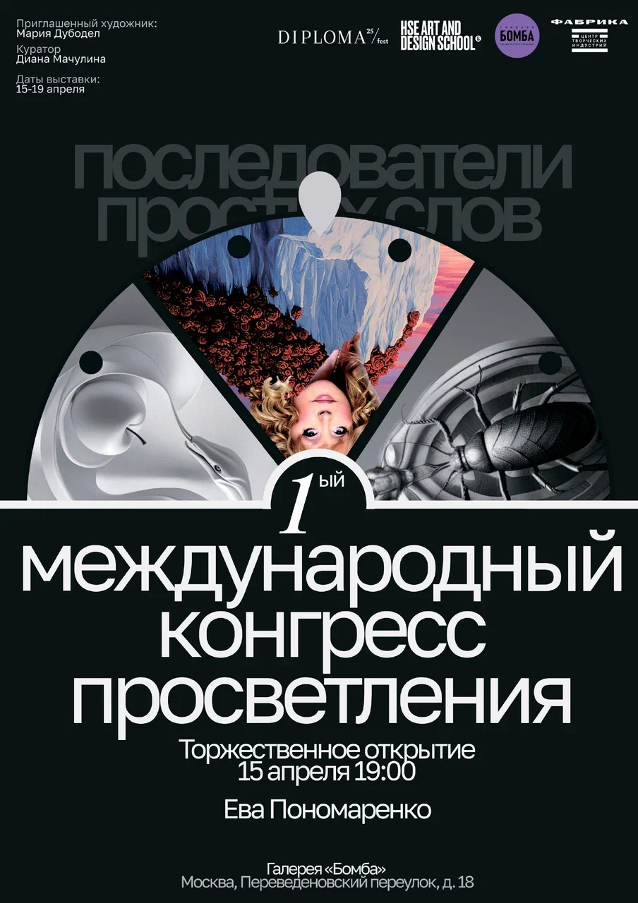 Выставка «1-й международный конгресс просветления» проходила в галерее Бомба с 15 по 19 апреля.