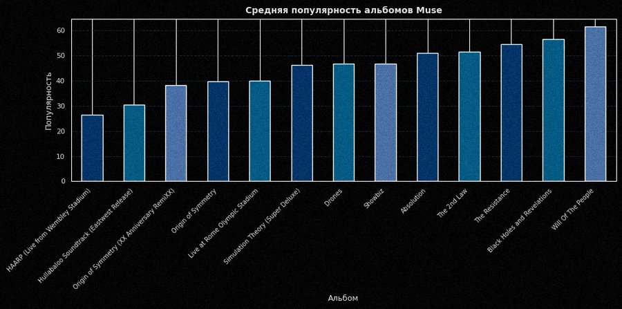 1. Какие альбомы Muse наиболее популярны среди слушателей?