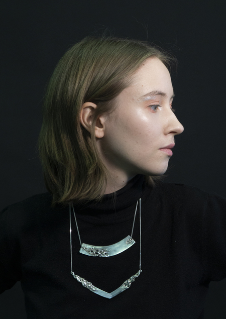 Серия ювелирных украшений d’Arc — три кольца, две подвески и серьги — рассказывает об обретении силы, вдохновляясь романтической трактовкой образа средневековья прерафаэлитами, монументальностью и твердостью стрельчатой арки и доспеха, возникающей из растительной хрупкости.