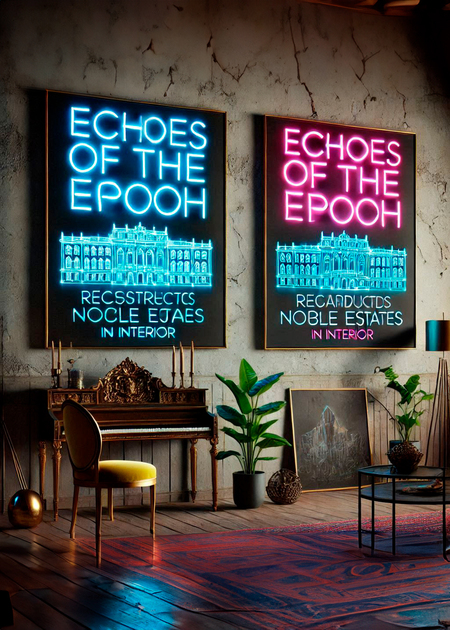 — Соцсеть: i*******m account for the company «Echoes of the Epoch» with some neon elements. The company reconstructs abandoned noble estates in Russia and transforms them into nightclubs (Bing) + сборка в коллаж лучших генераций + помещение логотипа на аватарку (Adobe Photoshop) — Постеры: a minimalistic neon styled posters for the company «Echoes of the Epoch» in interior. The company reconstructs abandoned noble estates in Russia and transforms them into fashion cultural spaces (Bing) + generative fill (Adobe Firefly) + размещение логотипа (Adobe Photoshop) — Наружная реклама: a minimalistic neon styled billboard for the company «Echoes of the Epoch» on the street. The company reconstructs abandoned noble estates in Russia and transforms them into fashion cultural spaces (Bing) + generative fill (Adobe Firefly) + размещение логотипа (Adobe Photoshop)