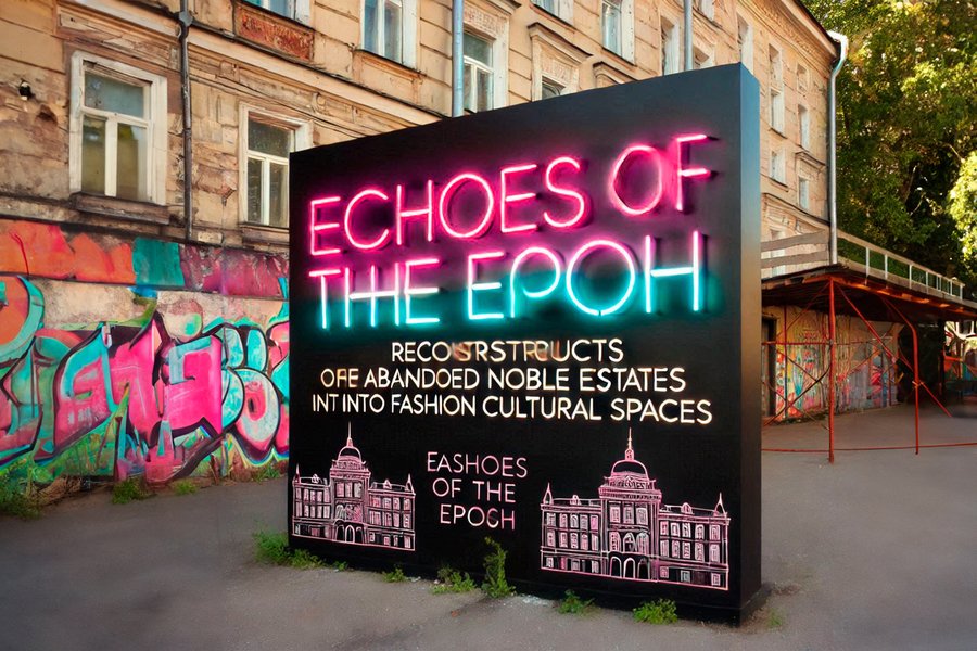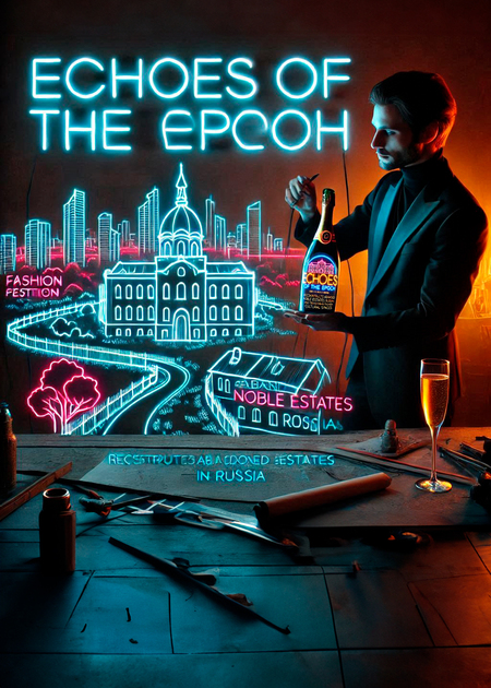 — Бары: reference image + old noble manor as bar (LeonardoAI) — Кофейни: reference image + old noble manor as coffeehouse (LeonardoAI) — Творческие мастерские: a neon styled fashion dresses for the company «Echoes of the Epoch». The company reconstructs abandoned noble estates in Russia and transforms them into fashion cultural spaces (Bing) + generative fill (Adobe Firefly) — Отель: reference image + old noble manor as hotel (LeonardoAI) Рестораны: reference image + old noble manor as restaurant (LeonardoAI) — Выставки: a neon styled fashion dresses for the company «Echoes of the Epoch». The company reconstructs abandoned noble estates in Russia and transforms them into fashion cultural spaces (Bing) + generative fill (Adobe Firefly) — Клубы: reference image + old noble manor as night club (LeonardoAI)
