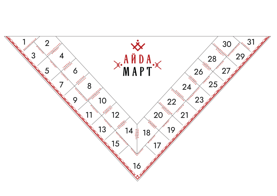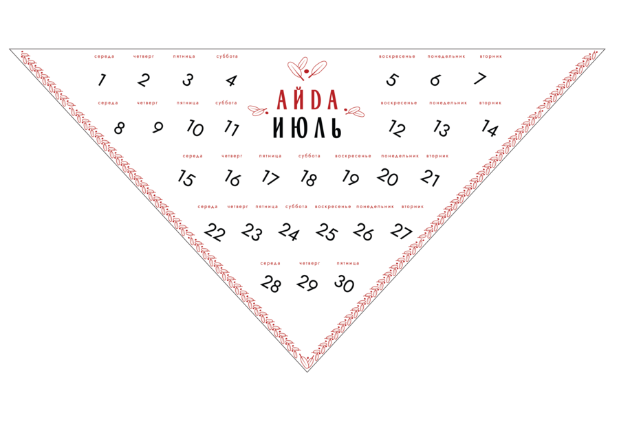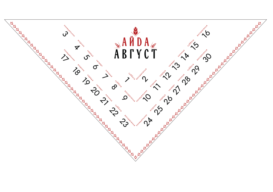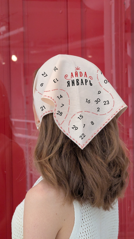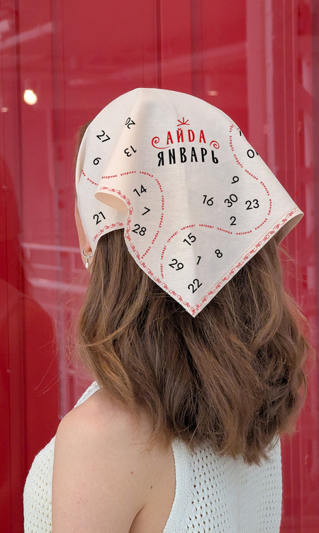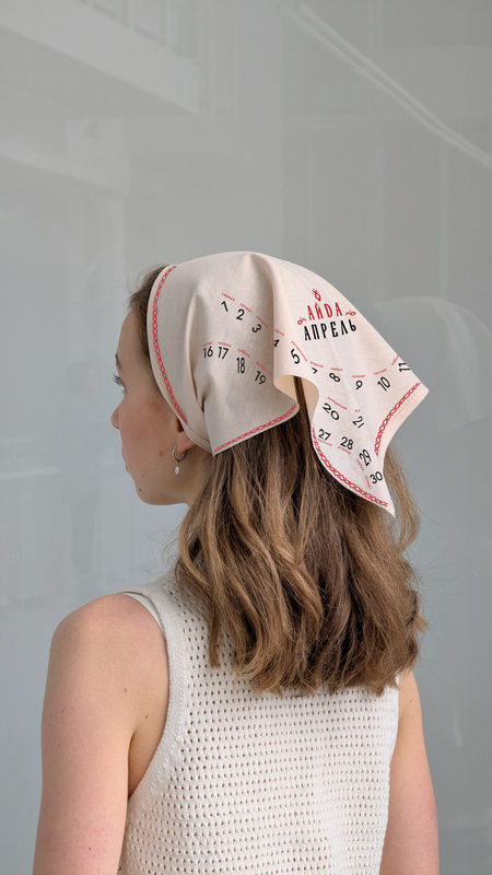 В поле цифры на косынке сливаются в орнамент, а дни недели кажутся красной вышитой строчкой