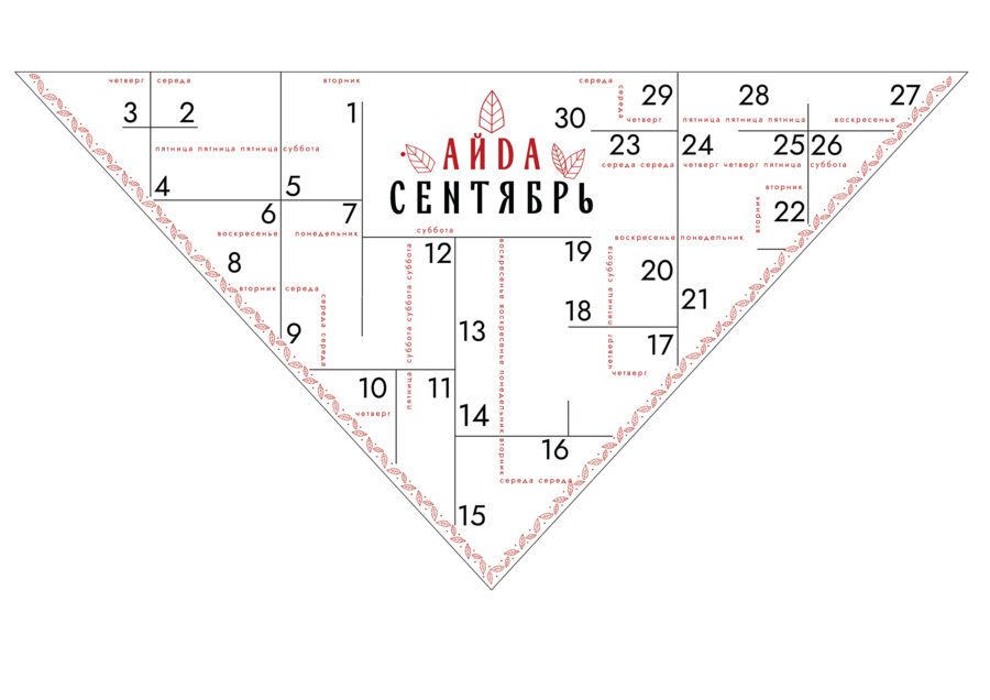 Модульная сетка календаря — отражение состояния поля в каждом месяце. Если в сентябре собирают урожай и границы полей видны чётко, то в апреле приходит паводок, и числа «плывут