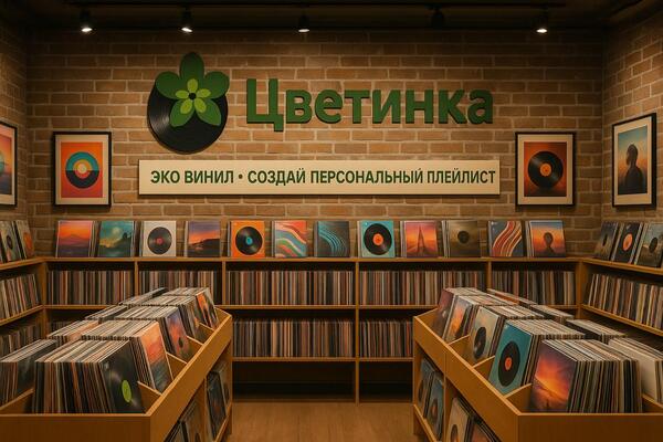 Tsvetinka is a unique brand of vinyl record production. One of its main advantages is the recycling of plastic to create vinyl, and an equally important distinguishing feature is the ability to create your own personalized vinyl playlist. Generate a retail space for this brand in a realistic style. Generate a retail space for this brand in a realistic style.
