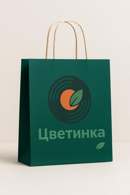 Tsvetinka is a unique brand producing vinyl records. One of the main advantages of this brand is the recycling of plastic to create vinyl, and an equally important distinguishing feature is the ability to create your own personalized vinyl playlist. Generate a realistic-style retail space for this brand. Generate a gift bag for this brand in the color scheme shown in the attached image.