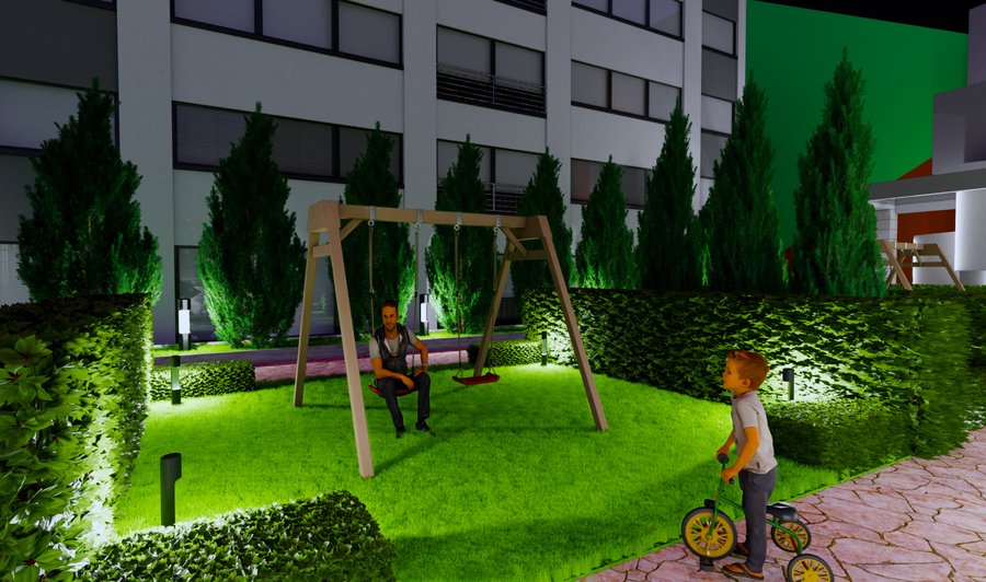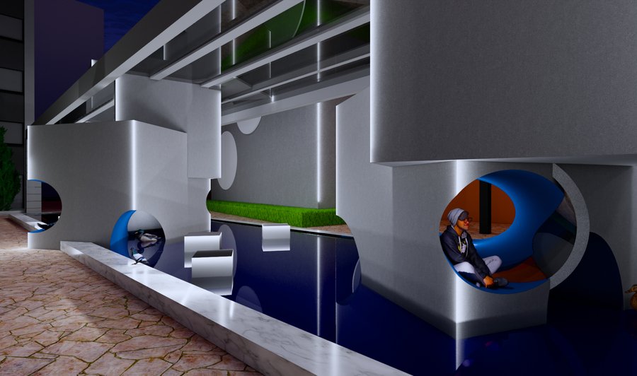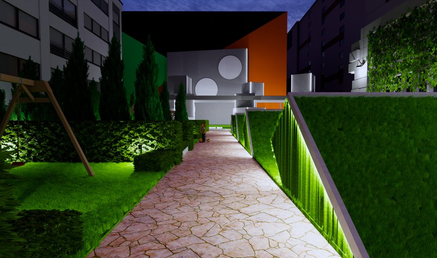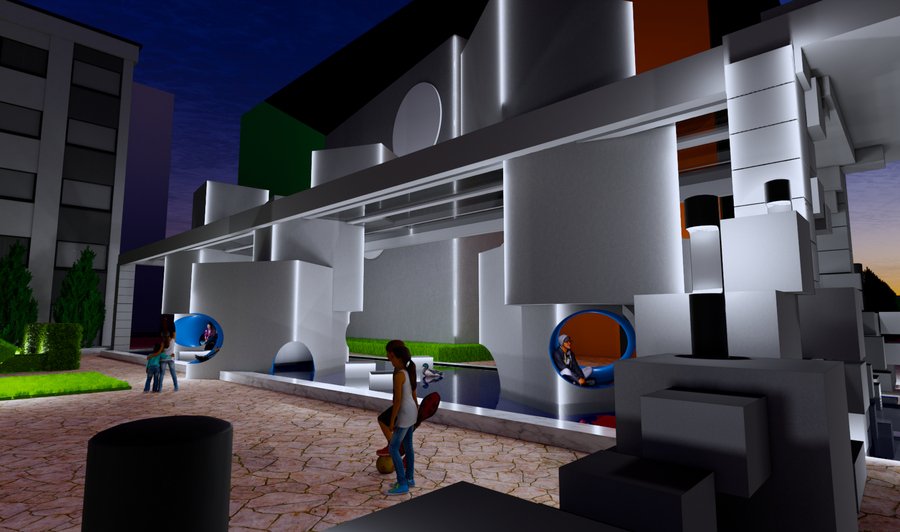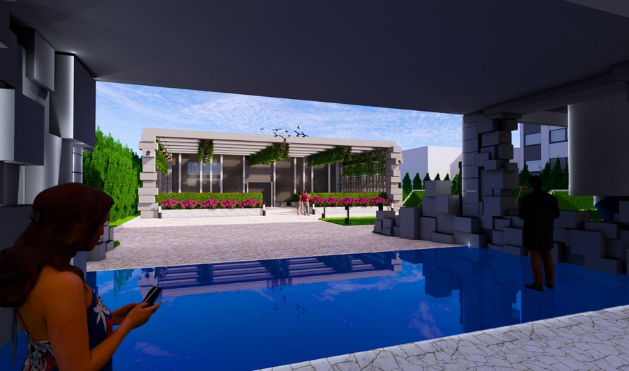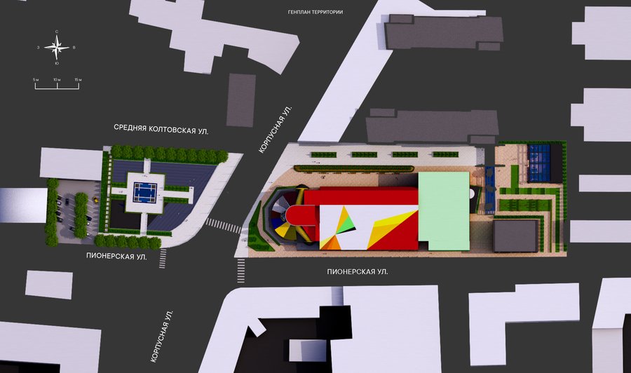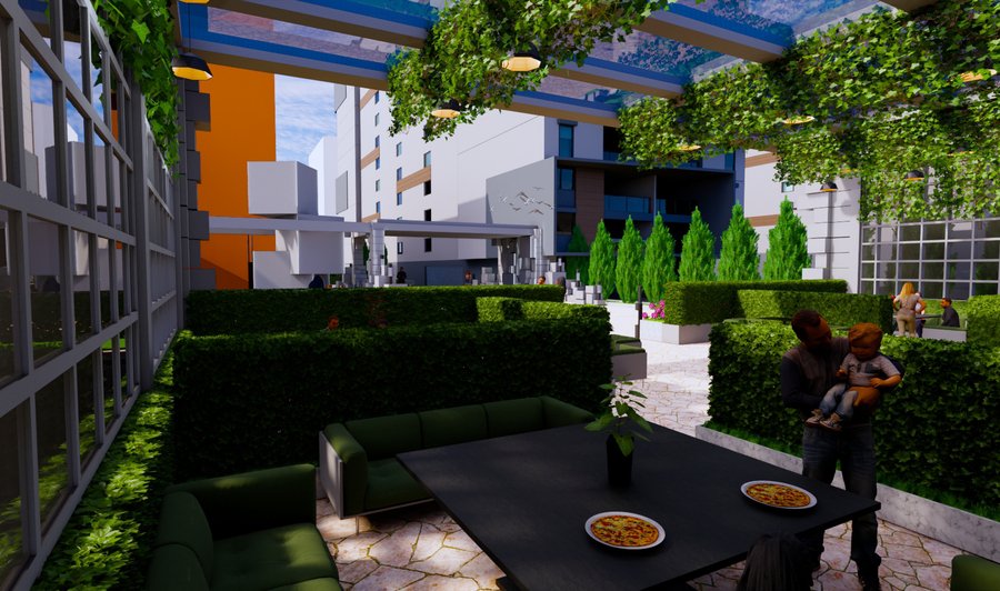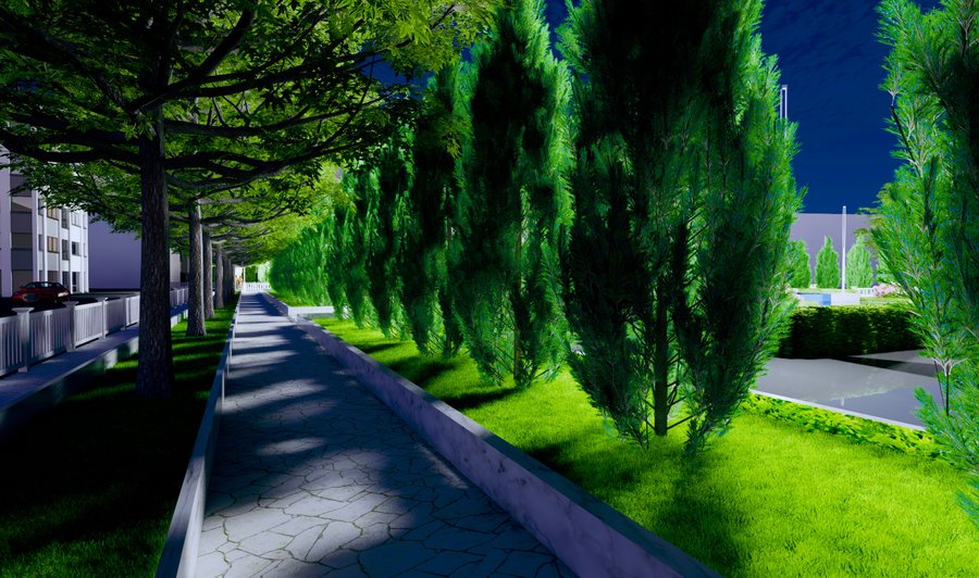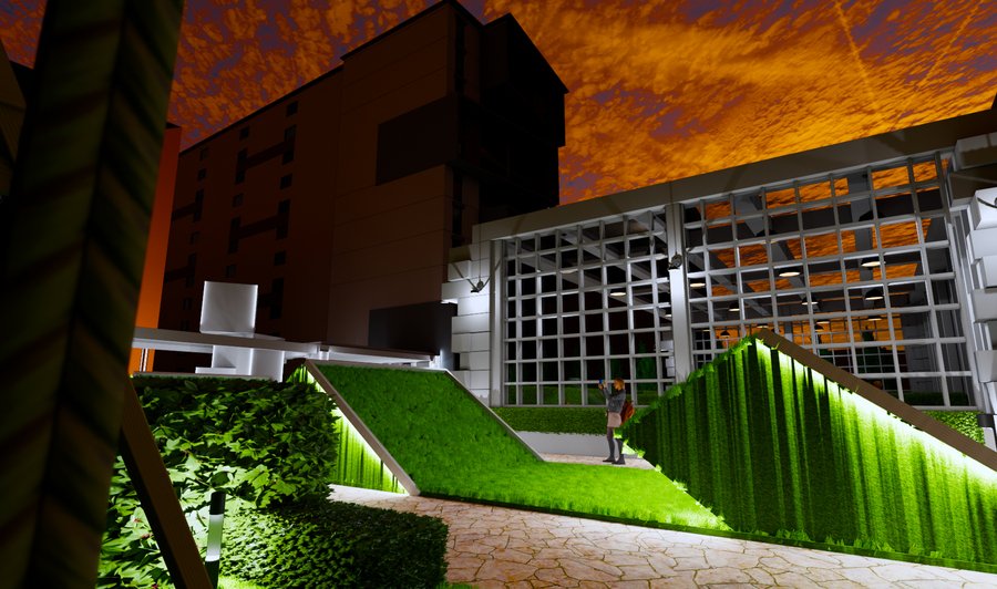 В зоне Метасквер находится фонтан, а вокруг озеленение под природу, парки и сады Италии. Зритель попадает в атмосферу, где царит природа и гармония.