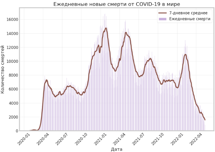 Пиковые значения: Определяются периоды с наибольшим количеством новых случаев и смертей.