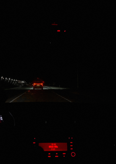 это видео было сделано поздним вечером по дороге домой; целых двенадцать минут машина впереди сопровождала нас, но в какой-то момент новый друг включил поворотник