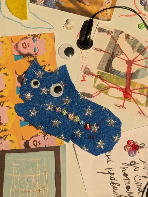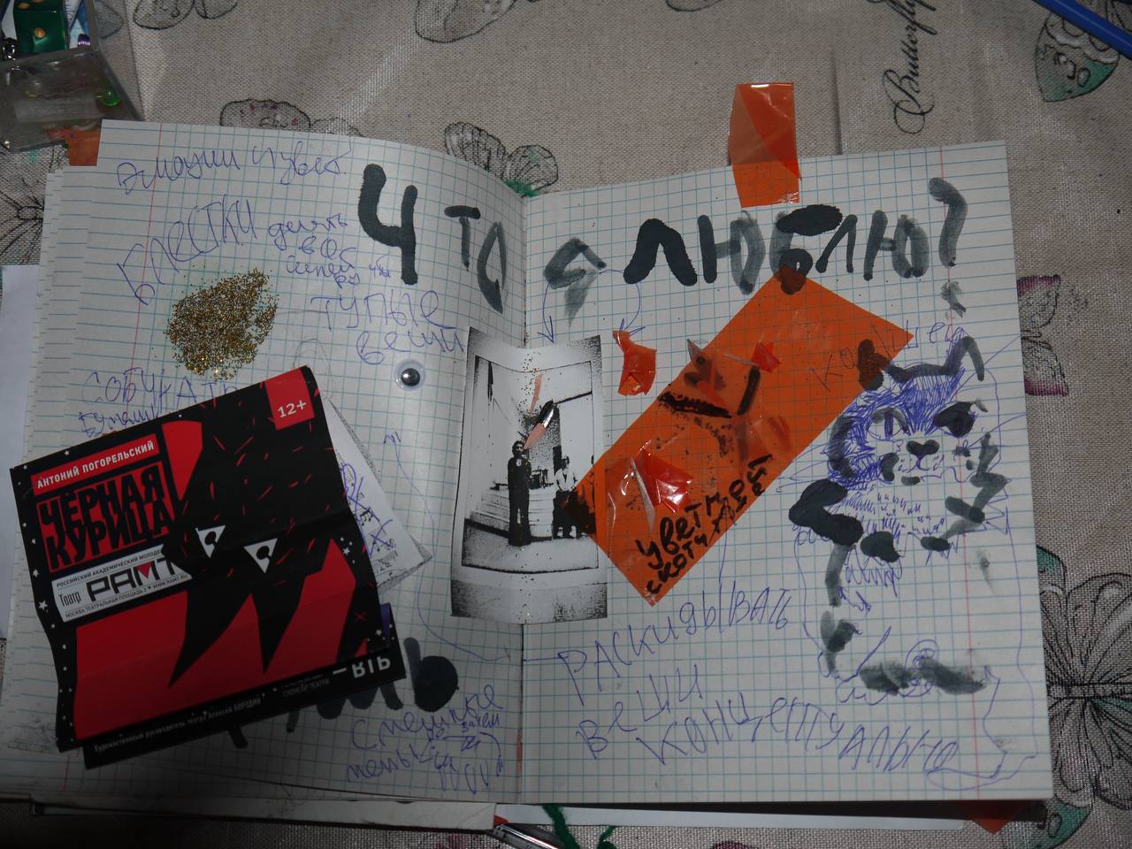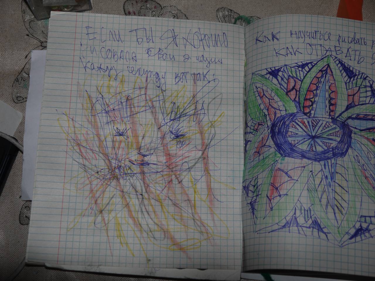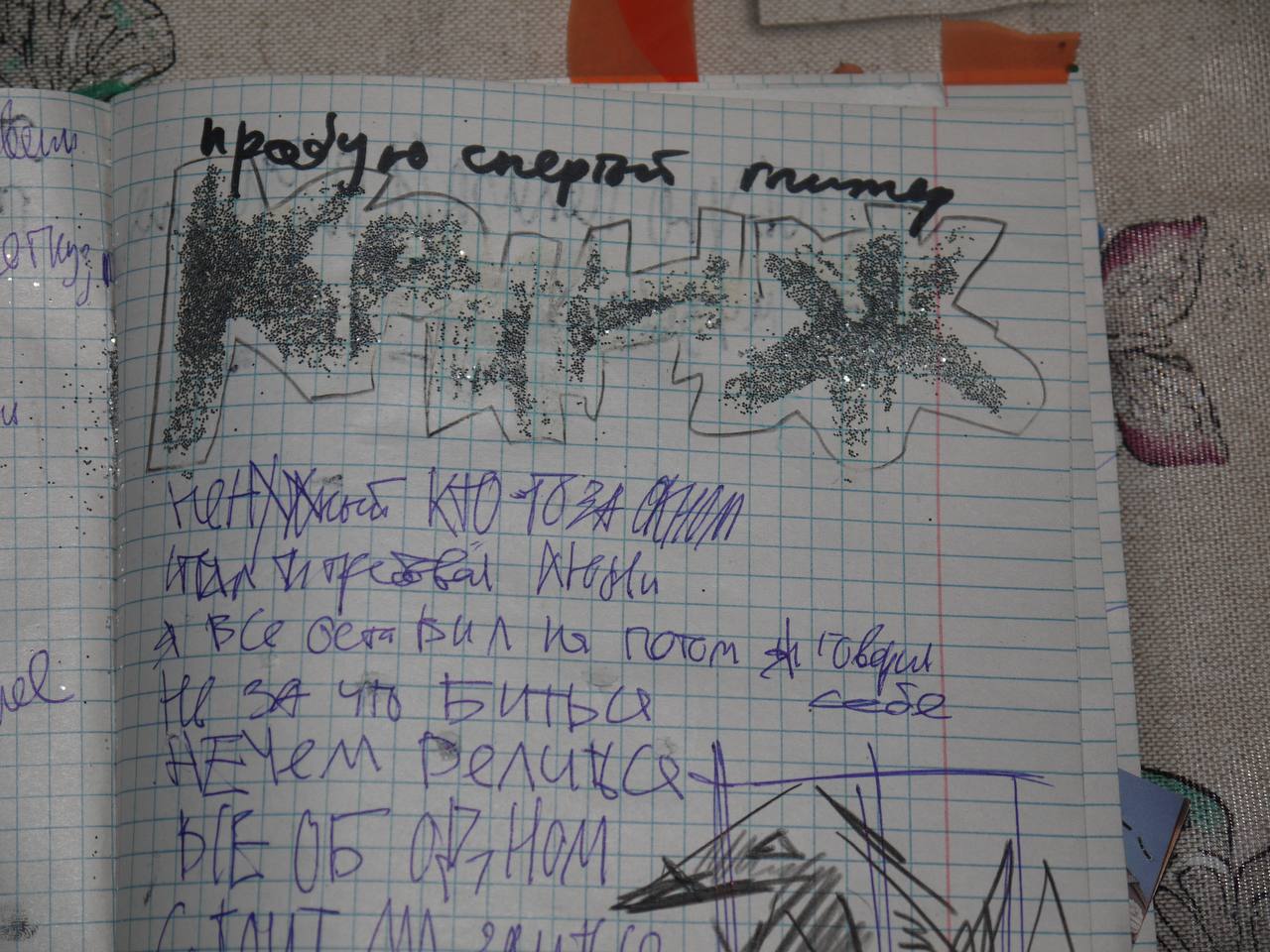 Весь ящик обклеен картинками: мемами, картинами, фотографиями деятелей искусства, которые передают внутренний мир, интересы подростка, его культурный код. Кроме того само оформление комода — процесс беспорядка, обычно комод стоит чистый и аккуратный, а здесь — хаотичные подписи, наклейки, бусины, будто бы собранный мусор положили не в корзину, а наклеили на стену, будто бы делая свой вариант граффити.