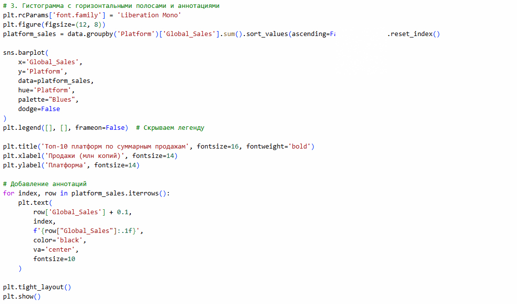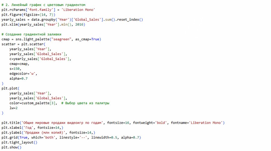эффективно отображает тренды и изменения данных во времени. для мировых продаж видеоигр это позволяет увидеть периоды роста, спада или стагнации.