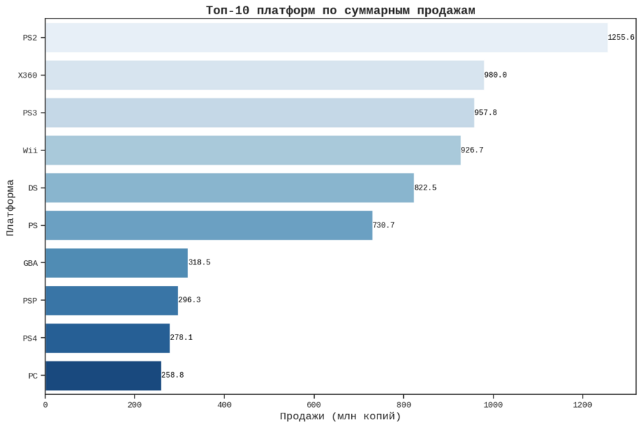 Датасет «Video Game Sales» с Kaggle.com содержит данные о продажах видеоигр, включая платформы, жанры, издателей и разбивку по регионам.