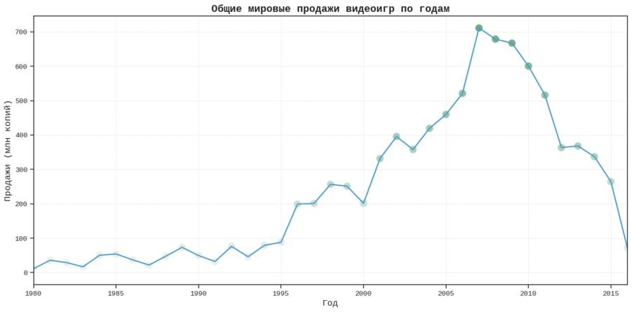Пик продаж видеоигр наблюдается в период 2006–2009 годов, после чего началось снижение.