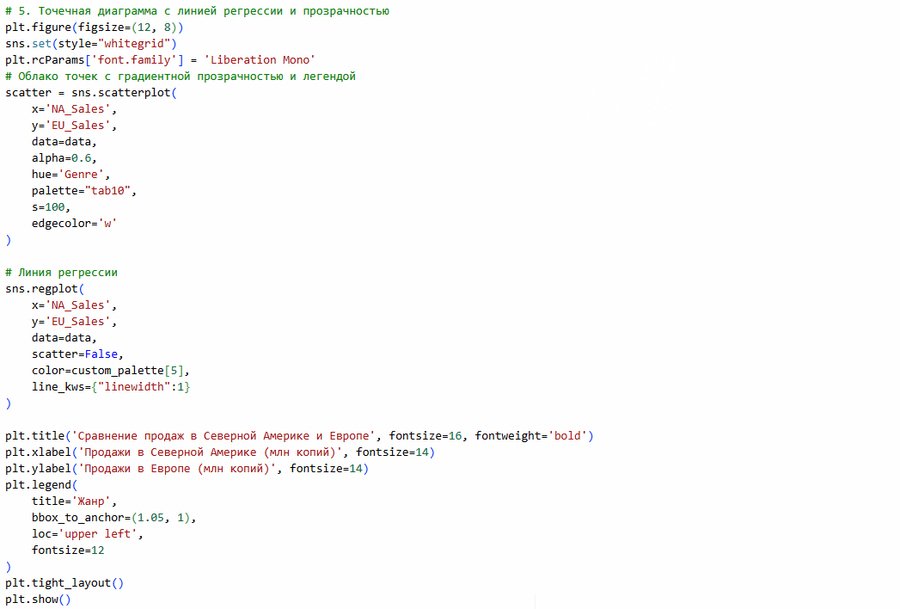 • Региональные продажи в Северной Америке и Европе играют ключевую роль, так как они наиболее сильно коррелируют с глобальными результатами. Это подчёркивает важность этих рынков для индустрии видеоигр.