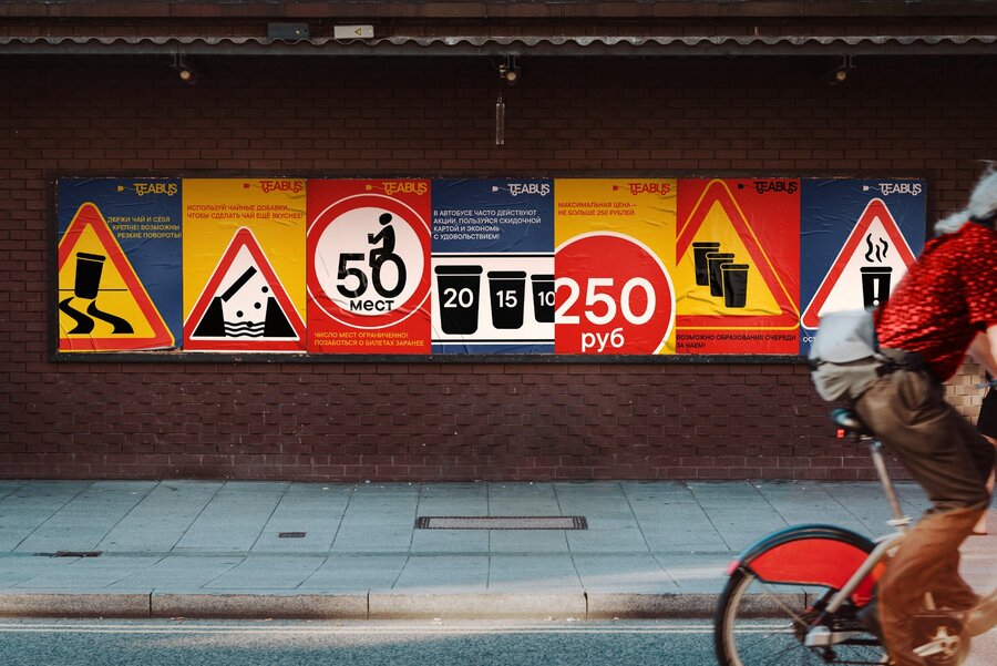 Прежняя айдентика состояла из ярких дорожных цветов, а метафорой являлись видоизменённые под чайную тему дорожные знаки и автобусные атрибуты.