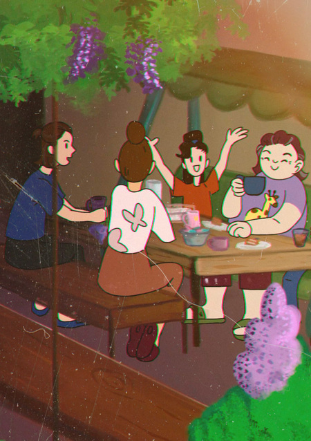 Документальная анимация про майские праздники, на которых я возвращаюсь домой и вижусь со всей своей семьей. Портрет места запечатляет дачу моих бабушки и дедушки, сад, чаепитие. Анимадок включает в себя предметную анимацию из овощей, которые напоминают мне об огороде.