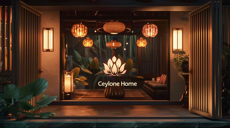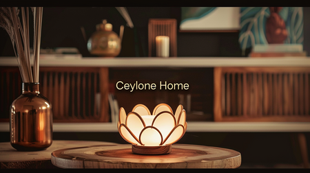 /imagine prompt: A breathtaking promotional poster inspired by the rich traditions of Asia for the home goods brand Ceylone Home. The photo depicts the Ceylone Home aroma diffuser. Printed on high quality paper, the poster features «Ceylone Home» in bold lettering. --ar 16:9 --v 6.0
