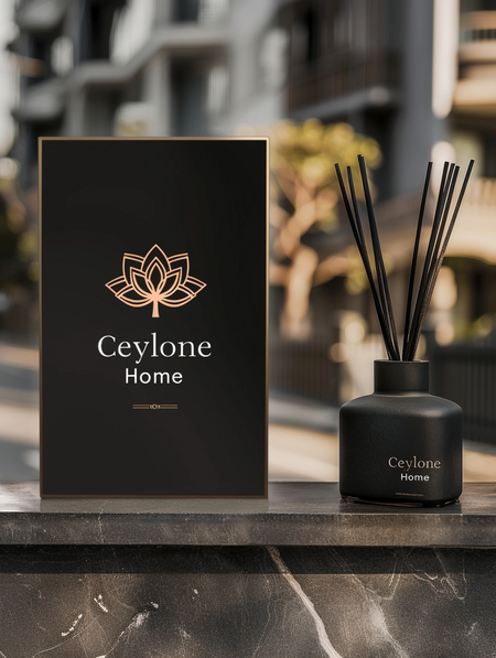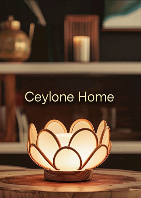 /imagine prompt: A promotional poster inspired by the rich traditions of Asia for the home goods brand Ceylone Home. The photo shows a Ceylone Home candle and diffuser. Printed on high quality paper, the poster features «Ceylone Home» in bold lettering. --ar 3:4 --v 6.0