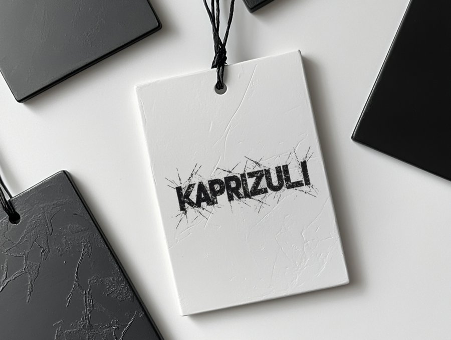 Промт для бирки: «craft white tag with chaotic patterns on a white background with daylight»