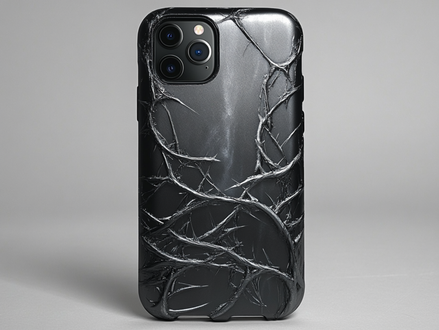 Промт для чехла: «iPhone case with random print, white light, blank broken screen, noise»