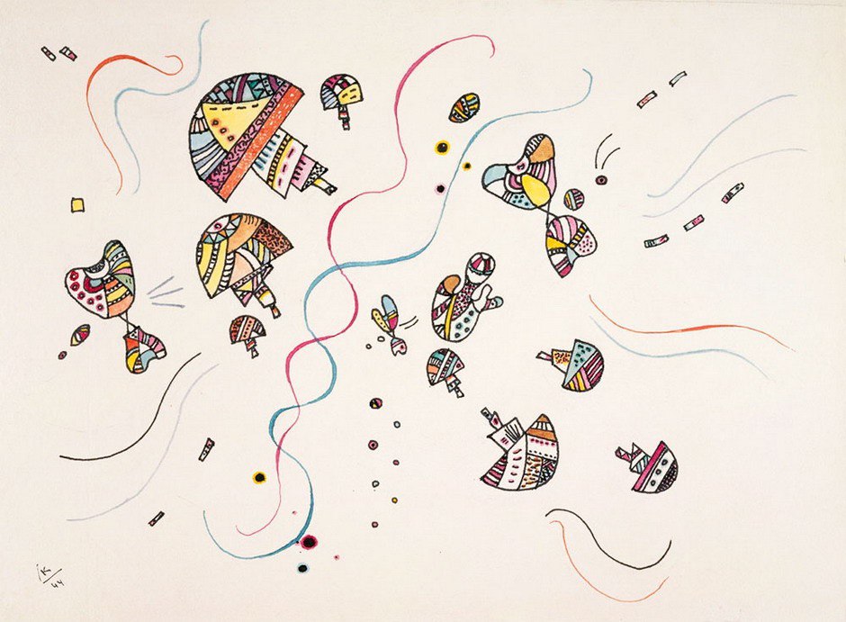 С течением времени, Кандинский выходит на поиски нового звучания искусства начиная все дальше уходить от реализма, стремления изобразить трехмерность на плоском холсте. Так зарождается беспредметное искусство — новое слово или второе дыхание живописи, которое открыл, а вернее сделал видимым Кандинский.