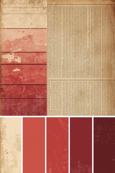Промт для цветовой палитры: A color palette with shades of red, beige and newspaper. Shades of red range from light red to burgundy. The shade of the paper is light beige. The palette should be designed in a vintage style.