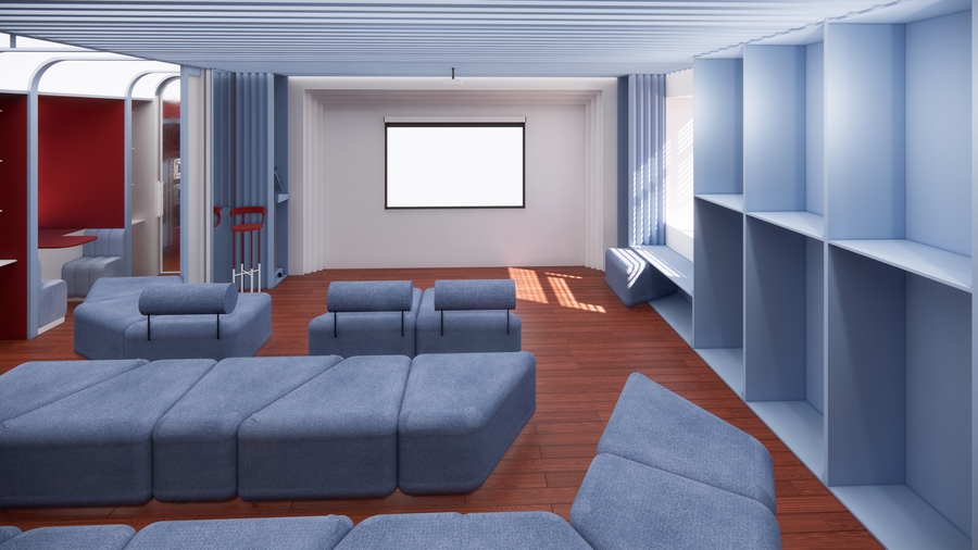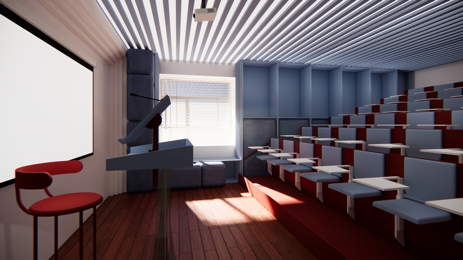 Основная задумка интерьера заключается в рациональном распределении пространства и трансформируемости и многофункциональности помещений. Лекционная может быть преобразована в зону отдыха, мастерская в лекционную, а компьютерные аудитории в зоны коворкинга.