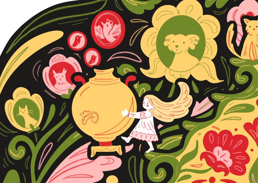 У маленькой Хохломы дома вечно страшный бардак… зато всегда есть ягодное варенье к чаю и повсюду свежие (и нарисованные) цветы!