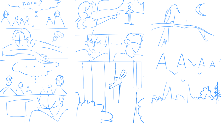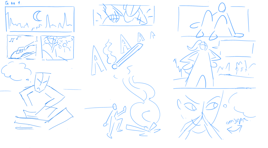 Далее мы с Ксенией созвонились и прикинули очень схематичную раскадровку будущего комикса, которая, однако, была понятна нам самим.