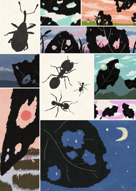 Мои размышления о таком подходе к насекомым-«вредителям» в природе привели меня к созданию постера о разнообразии форм деформированных насекомыми листьев. Я хотела показать, насколько разными они бывают, и открыть их невидимую прелесть.
