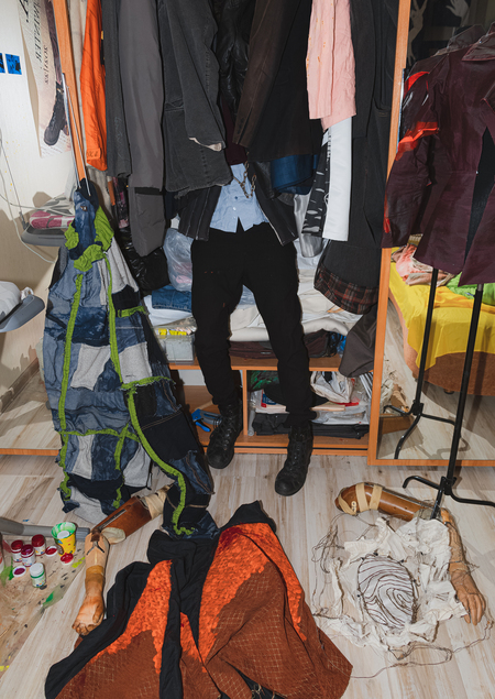 То, какую одежду выбирает для себя человек, каким цветам отдает предпочтение, как комбинирует вещи, насколько много внимания уделяет своему внешнему виду, характеризует его личность. Это факт, с которым трудно поспорить. Более того, зачастую мы делаем выводы о других, основываясь на первом впечатлении, которое складывается еще до того, как собеседник успевает что-либо сказать. Однако даже в вопросах одежды, которую мы видим на себе и других постоянно, остается скрытое, интимное пространство, недоступное большинству окружающих, пространство, которое человек создает исключительно для себя. Речь о гардеробе в значении места, где хранятся вещи. У кого-то это шкаф, где всё разложено по полочкам, согласуясь с логикой, у кого-то — коробка или стул, где все свалено в кучу, у кого-то есть отдельная гардеробная комната, а у кого-то весь дом превращён в один сплошной склад одежды. В этом проекте я исследую не только то, как разнообразно могут выглядеть люди, но и то, как по-разному они подходят к хранению своих вещей. Это разговор о том, как характер, личность и привычки человека раскрываются во внешнем бытовом проявлении.