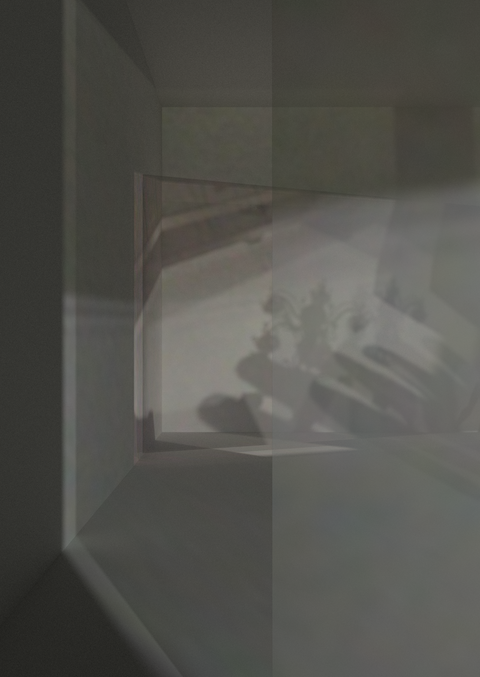 Прозрачность позволяет видео находиться в почти растворенном состоянии, витая в пространстве комнаты, как тень.