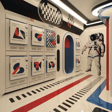 Один из моих прошлых проектов — дизайн временного фасада выставочного пространства, вдохновлённый творчеством Виктора Вазарели и тем, что его картина побывала в космосе. Также в том проекте я разработала продукцию (мерч) — космическое питание. В нынешнем проекте я взяла эту продукцию за основу и сделала стартап — бренд космического питания «VasarelySpace», дизайн которого сочетает в себе контрастные цвета, абстрактные формы, а также эстетику ретро-футуризма и, конечно же, космоса.