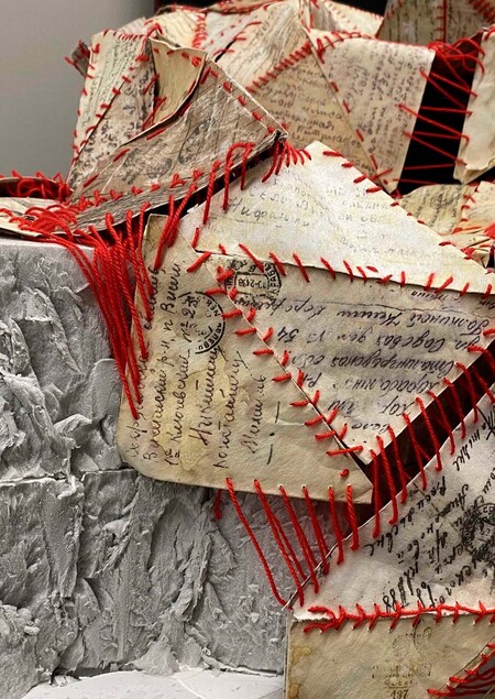 Нить появляется в проекте неслучайно. Военно-полевую почту часто называли единственной связующей нитью между фронтом и тылом. Красный цвет тоже выбран осознанно, он считается самым сильным из всех возможных оттенков. Люди верят, красная нить способна охранять не только человека, но и вообще все, что составляет его окружение. Многие носят красную нить как оберег, некоторые повязывают её на все, что им дорого. Так и дорогие сердцу и душе письма сшиты именно красной шерстяной нитью.